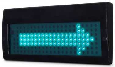 Динамический светоуказатель с изменяемым смысловым значением (Стрелка влево/стрелка вправо/Стрелка в обе стороны), 9-13.8В, 180мА, 300х130х25мм, 0,28кг, -30С..+55С, IP 52. Предназначен для обозначения эвакуационных путей в помещениях различного назначения. Направление движения при эвакуации указывает управляемая стрелка. Включение оповещателя происходит после подачи питающего напряжения.